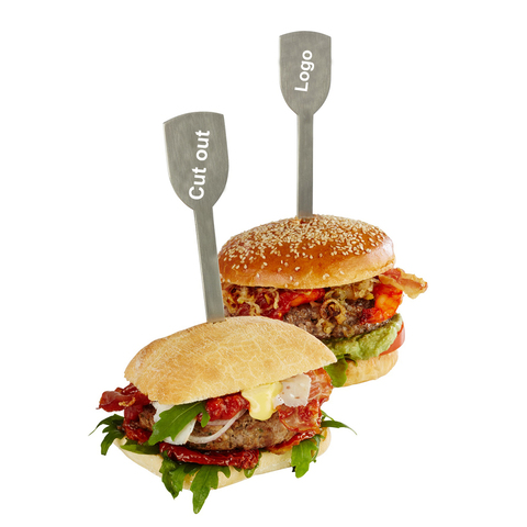 نقش بشعار مخصص ، قطع من العلامة التجارية تصميم ليزر تقطيع معدني أسياخ من الفولاذ للهامبورجر